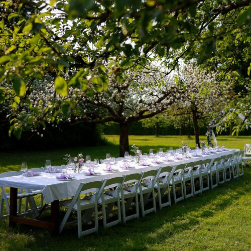 Een diner bij mooi weer in de boomgaard – wie wil dat nou niet? Ook in Het Koetshuis of in de Paardenstal is er volop ruimte om samen te dineren en te genieten van een bijzonder samenzijn. Wat jullie plannen ook zijn, we zorgen voor een setting die past bij jullie dag.